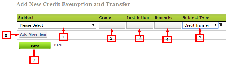 5. Select subject type (Credit Transfer / Credit Exempted).