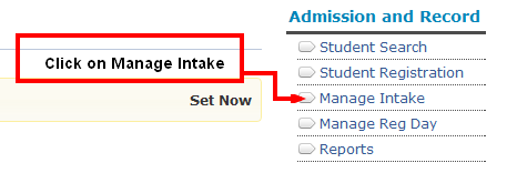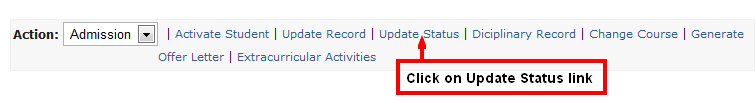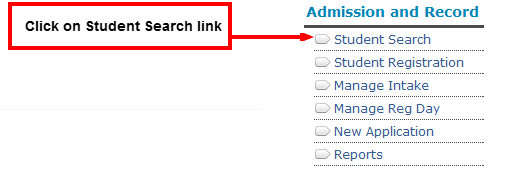 Click on Admission and Record link in order to access features under Admission and Record. Clicking on the Admission and Record link will display the sub link under the Admission and Record.