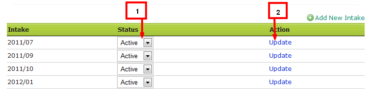 User can update existing intake. Intake can be set to inactive if its no longer needed. Only active intake will appear throughout the system.