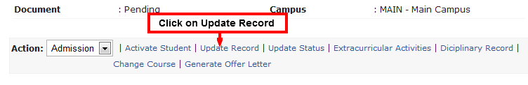 Click on update record link in order to update personal information, contact information, academic background, upload photo and document checklist. Basically the page will appear same as in student registration section.