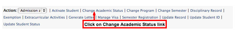 Click on the Change Academic Status link to access Change Student Academic Status page.