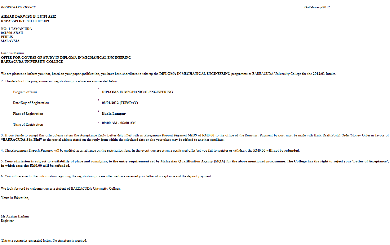 ● Academic Background - Display qualification or education background for particular students (e.g. SPM, STPM, etc.)