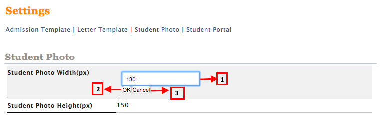 is basically provided to allow user set the width and height of photo in pixel format. To set the photo width and height, click on Student Photo